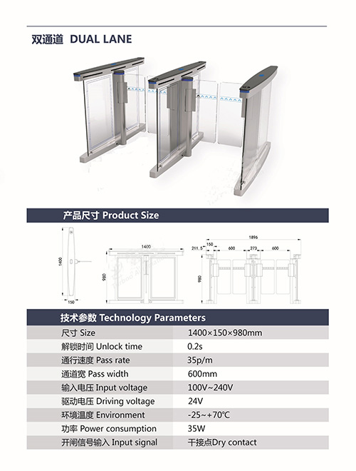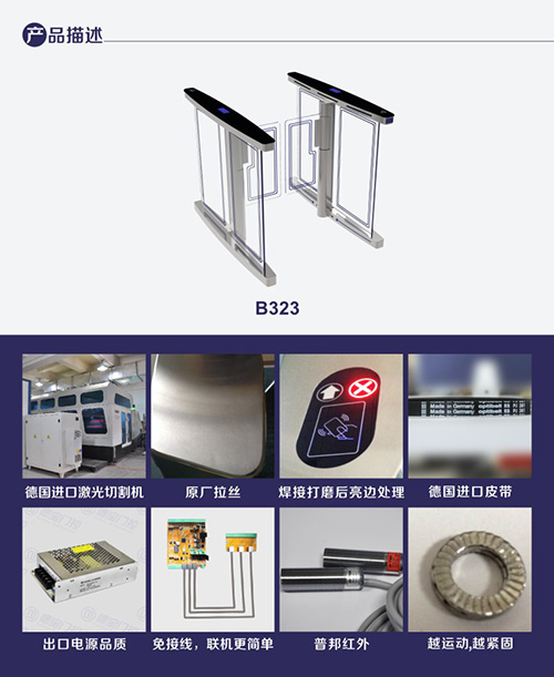 1.速通門B323A系統(tǒng)具備防撞功能,當(dāng)有外物在未授權(quán)的狀態(tài)下撞擊擺桿,擺桿運(yùn)動角度達(dá)到菜單設(shè)定的值(如 2°),控制器_會啟動剎車機(jī)構(gòu),阻止擺桿運(yùn)動,并啟動聲光報警。當(dāng)外力進(jìn)一步增大,剎車控制器會保護(hù)擺桿不被撞斷,外力撤除后,擺桿自動歸位,系統(tǒng)正常; 2.速通門B323A系統(tǒng)具備角度分辨和零位自檢功能,包含 500P/R 編碼器,分辨精度高,這種高精度的傳感器的優(yōu)勢是使擺桿轉(zhuǎn)動_; 3.非法進(jìn)入有報警提示功能; 4.防沖功能,在沒有接收功能開閘信號,擺臂自動鎖死; 5.紅外防夾功能,在擺臂復(fù)位的過程中紅外檢測到人在通道中,擺臂會自動回到打開狀態(tài); 6.速通門B323A統(tǒng)一標(biāo)準(zhǔn)的對外電氣接口,可與多種讀卡器相掛接,并可通過管理計(jì)算機(jī)實(shí)現(xiàn)遠(yuǎn)程控制與管理; 7.系統(tǒng)設(shè)有過流保護(hù)裝置,當(dāng)負(fù)載_過某設(shè)定值(如 2._),系統(tǒng)停止工作,以免燒壞電機(jī)等設(shè)備;
